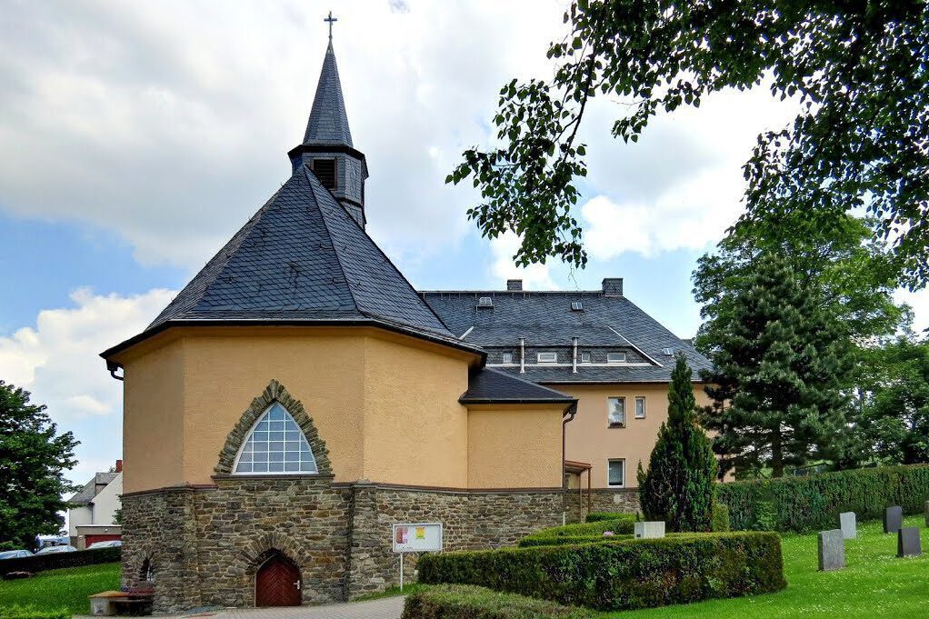 Die Goldenen Zwanziger gewährten die finanziellen Voraussetzungen dafür, sodass am 25. August 1929 die Weihe erfolgen konnte. Eine Besonderheit ist, dass Kirche und Pfarrhaus ein Gebäude bilden. Turm, Fenster und Portal zeigen typisch neugotische Elemente. Der Gesamteindruck, die Nüchternheit und Klarheit des Baus verweisen jedoch darauf, dass der Chemnitzer Architekt Hans Hiltscher von der Bauhaus-Bewegung beeinflusst war – möglichst zweckmäßig sollte das Gebäude sein.